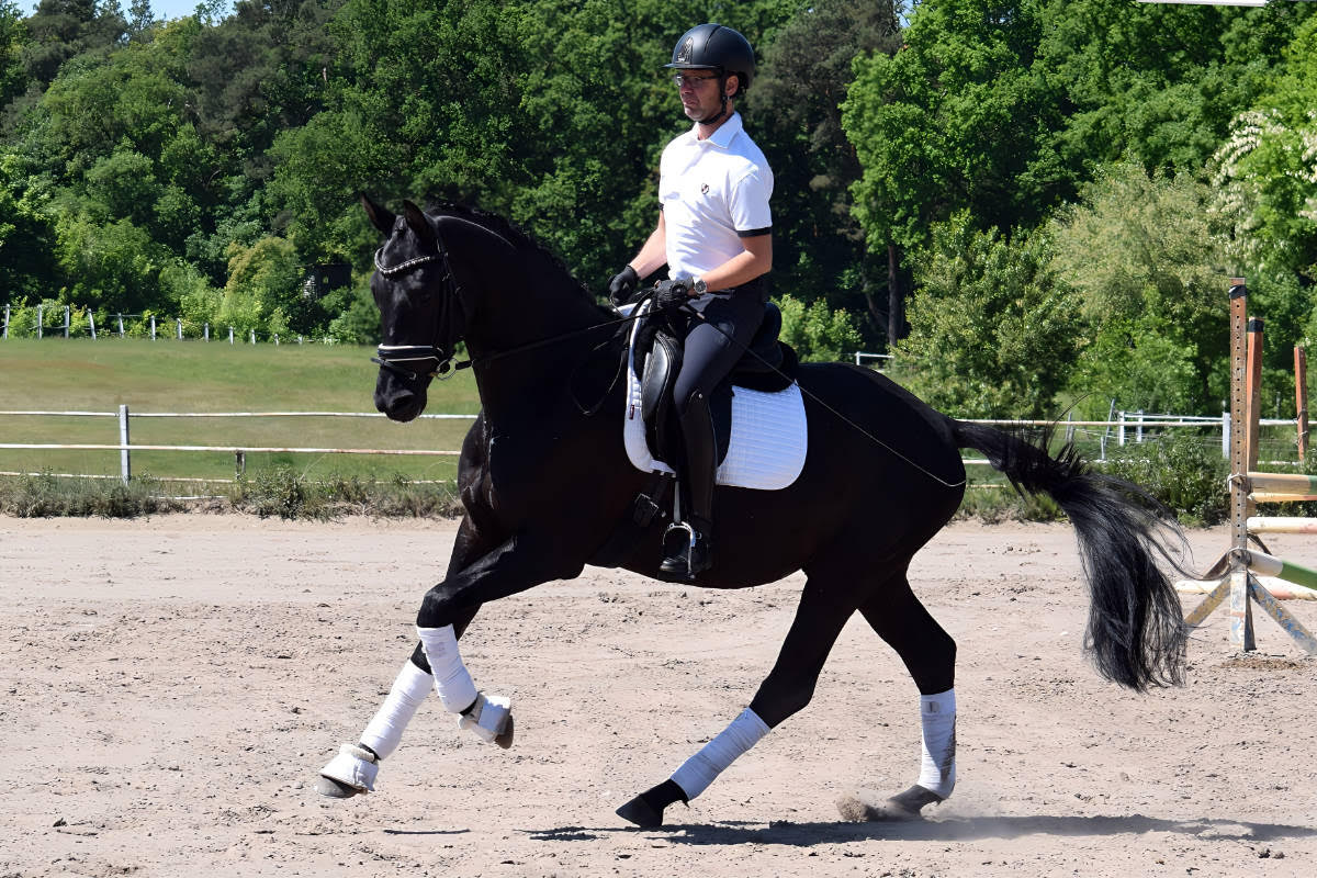 Ich biete Beritt in der Dressur in Berlin und Brandenburg an, dabei nehme ich mir Zeit um individuell auf jedes Pferd einzugehen und es abwechslungsreich auszubilden.