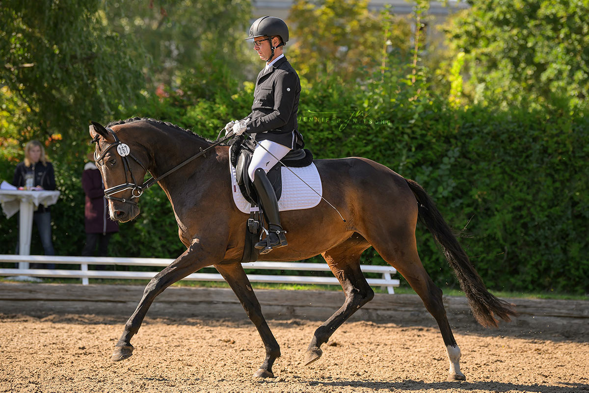 Sie platzierte sich ebenfalls mit einer 8,5 für den Trab in einer Reitpferdeprüfung und bezog dann