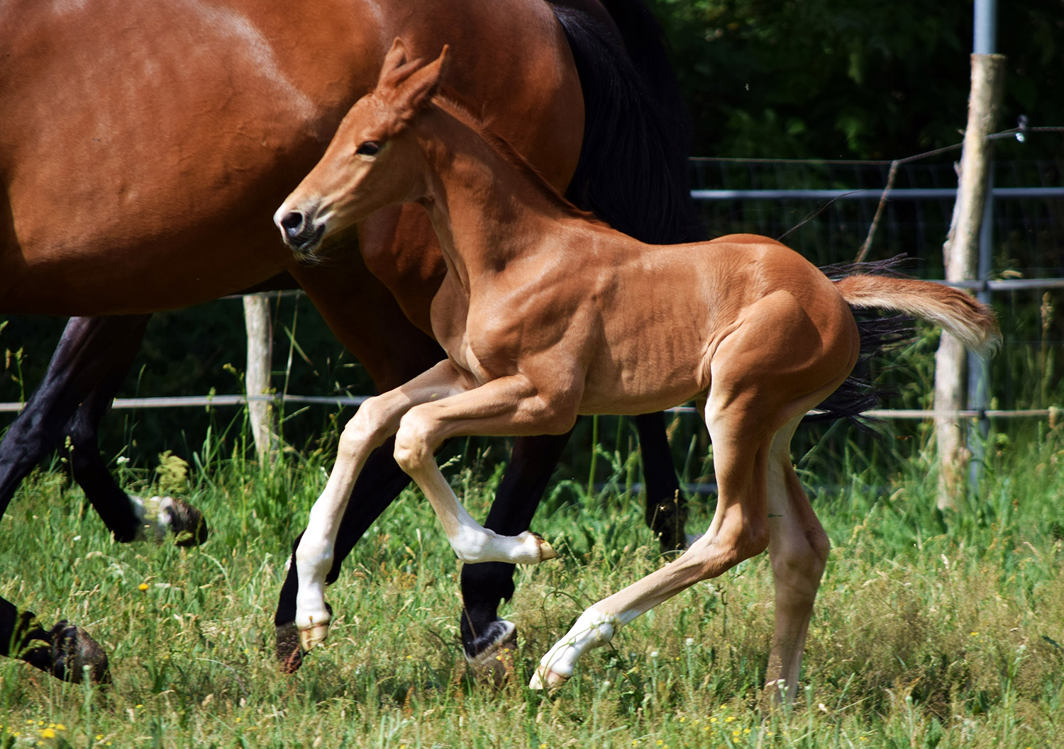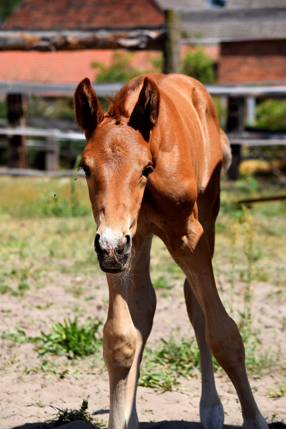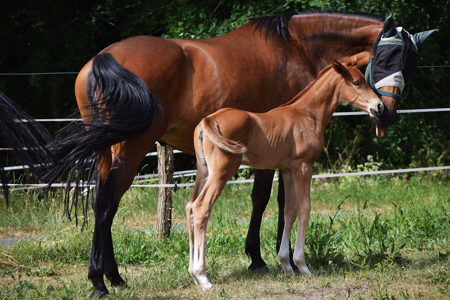 Wir begrüßen das siebte Stutfohlen in Folge! Flockentanz von Millennium aus unserer Florentine von Kostolany brachte am 08.06. ihr viertes Fohlen zur Welt. Die kleine Stute von SHU FU (Sezuan x Fürst Heinrich) ist groß, langbeinig und sehr dem Menschen zugewandt. Wir freuen uns sehr über die dritte selbstgezogene Generation in unserem Stall.