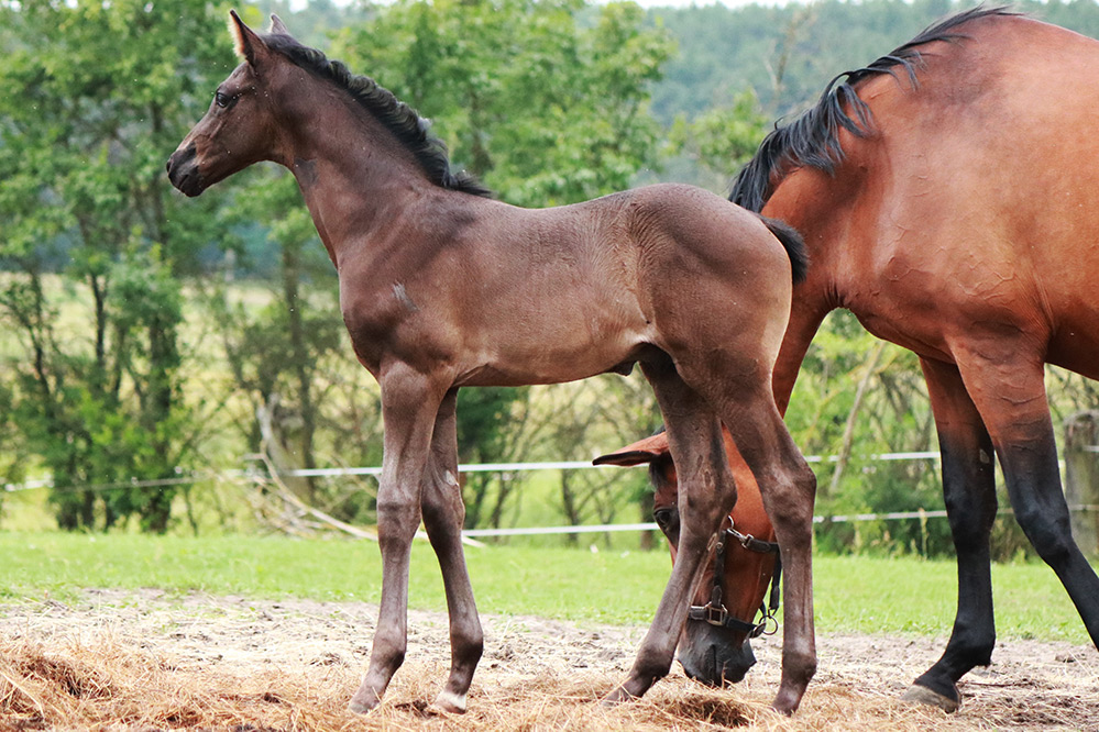 Nur wenige Tage nach Donna, hatte auch bei unserer Flockentanz das Warten ein Ende. Mit gewohnter Souveränität brachte sie einen kleinen, gesunden und lackschwarzen Hengst vom Ausnahmehengst St. Emilion zur Welt. Er zeigte uns vom ersten Tag an Bewegungen von besonderer Qualität mit viel Elastizität und Raumgriff, sowie einen außergewöhnlichen Typ. Wir sind mehr als zufrieden mit dem kleinen schwarzen Hengst und freuen uns jetzt schon sehr auf seine Zukunft. Für unsere Flockentanz ist es bereits das 6. Fohlen in Folge. Sie hatte immer problemlose Geburten und war stets eine tolle Mutter. Nun soll sie eine kleine Babypause haben und gegebenenfalls im nächsten Jahr wieder besamt werden.