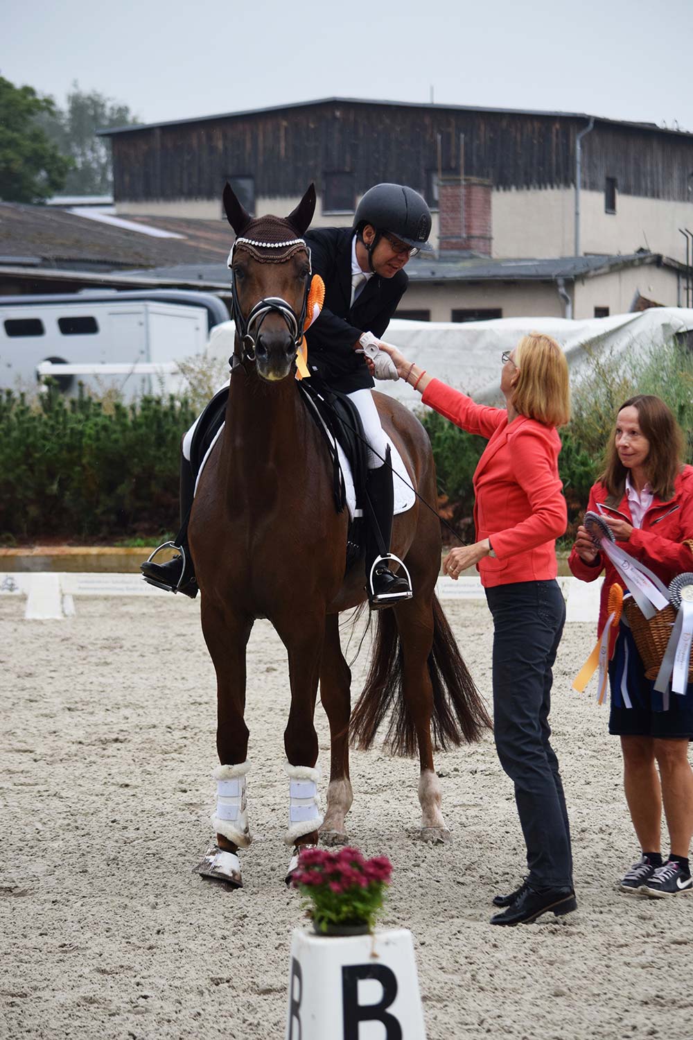 welcher mit einer 7,7 die Dressurpferde A für sich entscheiden konnte. Er erhielt für alle drei