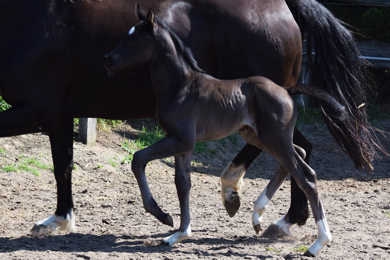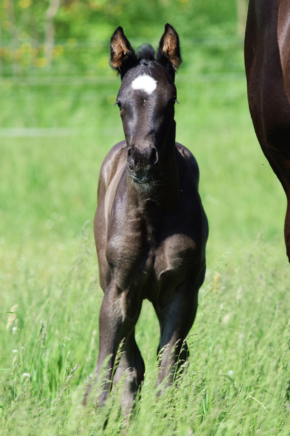 Wir dürfen unser erstes Fohlen in diesem Jahr begrüßen. Am Montag brachte unsere Donna Franka (Don Frederic x Sir Donnerhall) ein gesundes und bildschönes Stutfohlen von In My Mind (v. Asgards Ibiza; Helgstrand Dressage) zur Welt. In My Mind konnte sich erst vor wenigen Tagen erneut für das Bundeschampionat qualifizieren und nahm letztes Jahr an den Weltmeisterschaften der 5-Jährigen Pferde teil. Es ist Donnas zweites Fohlen und sie geht voll und ganz in ihrer Mutterrolle auf.