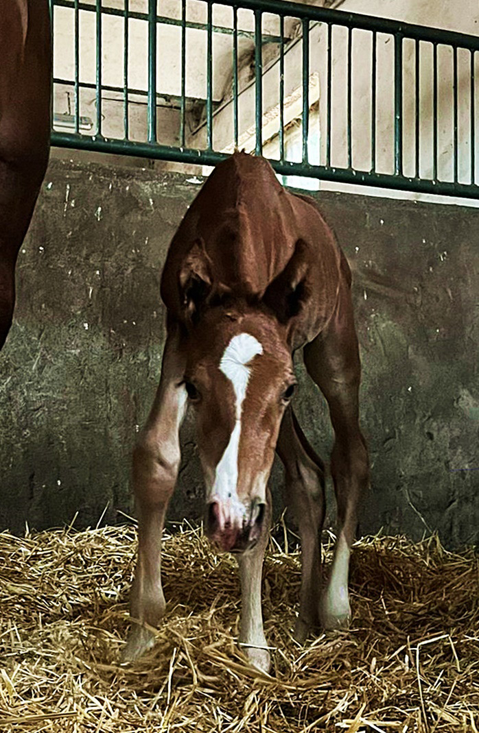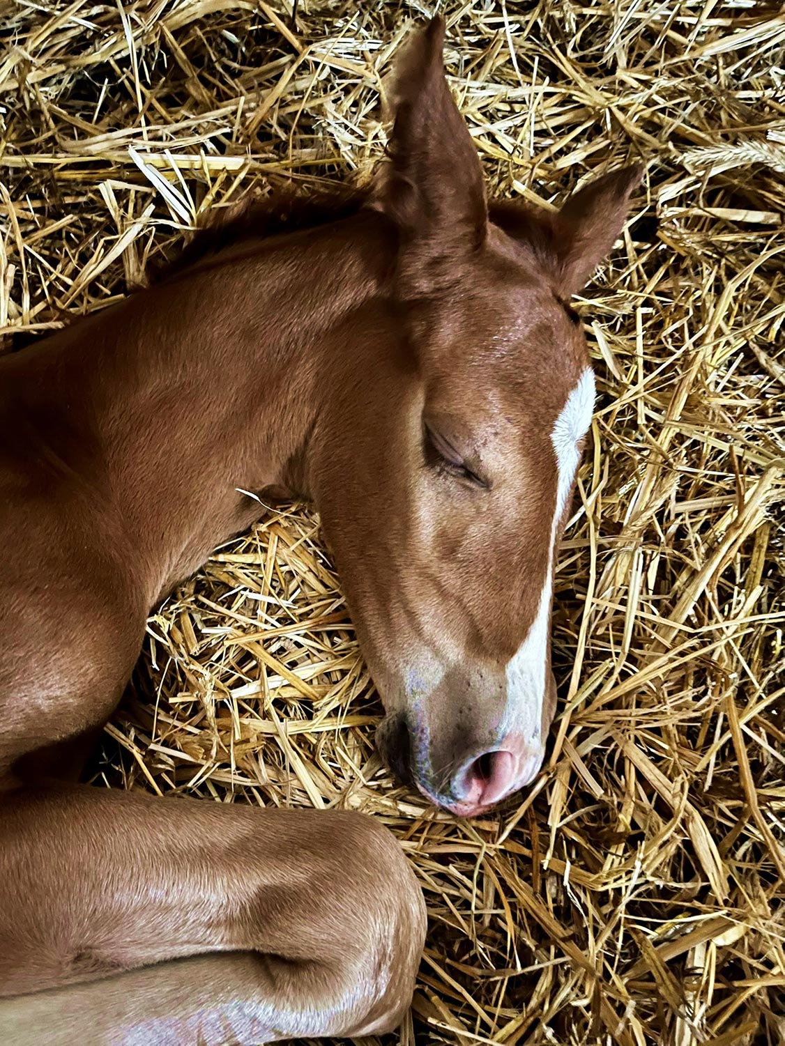 Wir beenden unsere Abfohlsaison mit einem schönen, bunten Stutfohlen von Va Bene (Veneno HC x Belissimo M) aus der Diamantenkrone (Don Romantic x Walt Disney). Das Fohlen entstammt einer wertvoll - gezogenen Pachtstute mit dem selten - gewordenen Blut des Don Romantic. Dieses Fohlen ist verkäuflich.